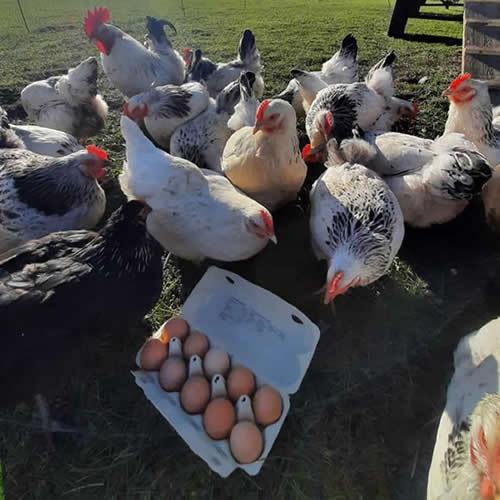 De kippen scharrelen over het erf en de schapen grazen in de wei.